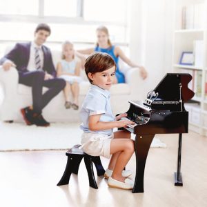 Budding concert pianists will easily scale the 30 keys of this colorful wood grand piano, made for small hands and big sounds. Ages 3+ Dimensions: 50 x 52 x 52 cm WARNING: Choking hazard -Small parts. Not for children under 3 yrs. Do not use close to the ear! Misuse may cause damage to hearing….