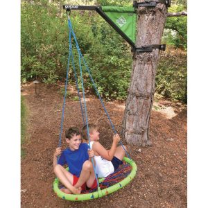 With the Surfin’ Swing, kids can carve through the air, feeling the rush of freedom as they soar higher and higher! Kids can twist, turn, and perform tricks mid-flight, all while suspended from sturdy ropes. Easily set up on Trelines’ Ninja Adventure, Swingset lines, or to a sturdy branch. Weight limit: 250 lbs Ages 5+