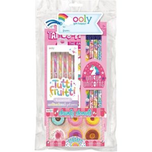 Fill your pages with everything fun and fruity and cool and creative with the Very Beary Sweet Happy Pack! You’ll get a grand collection of fruity scented stickers to match with the Tutti Frutti Scented Gel Pens as well as the Unique Unicorns Graphite Pencils, Dainty Donuts Scented Erasers and now Over the Rainbow Ta