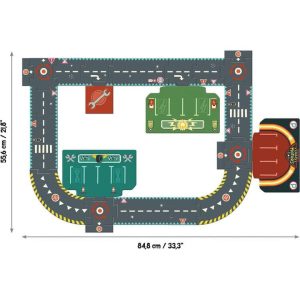 A giant circuit made up of 24 pieces to create different routes and play with the Crazy Motors cars. Let’s go! Multiple possible circuits. Large pieces made of very strong card and easy to assemble.  Large car parks    Ages 3 – 9 years Includes: 24 piece puzzle made of printed card