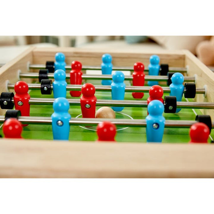 Games for 2! Foosball or Ice Hockey take your pick with this 2 sided table top game designed for fun, improves fine motor skills, concentration, co-operative play and logical thought. Ages 3+ Materials: Wood, Steel Care instructions: Wipe with damp cloth, air dry; do not immerse in water PLEASE NOTE: This item is exclu