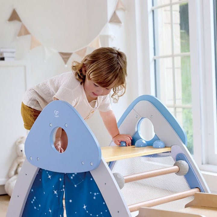 A durable, multifaceted climbing playset, designed for safety and developmental play. Rockets and stars theme smooth and soft surface double sided slide climbing frame- enhancing hand-eye coordination Separate tent space- multiple ways to play Ages 2-3 Years PLEASE NOTE: Due to item size/weight it is excluded from free
