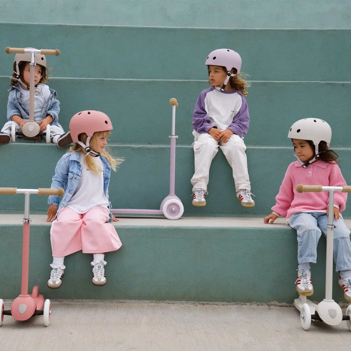 The Banwood Eco Helmet combines safety and sustainability, made from durable ABS recycled materials with a protective foam lining. Lightweight at 355 g, it features a dial-fit adjustment system, recycled chinstrap, and ventilation for comfort. Designed for ages 3+ and is CE-certified for reliable protection. Size adju