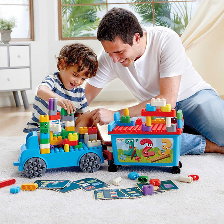 Welcome to the world of mathematics! With this Truck, you can build and learn all at the same time. Whether you’re counting blocks or building little creatures, there are no limits to what you can create. With over 100 pieces included, this set is made for playtime and learning with useful information cards that lend a