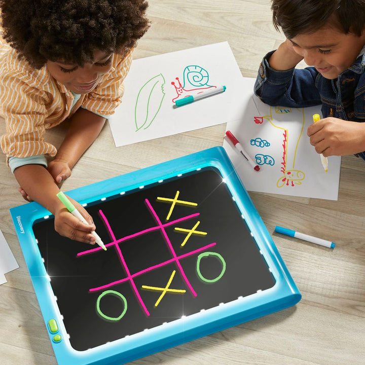 The Discovery™ Glow Easel Dual-Sided Art Station is a dynamic and innovative art tool designed to ignite the imaginations of young artists. This dual-sided easel offers a traditional drawing experience on one side and an exciting illuminated light board on the other, allowing children to explore their creativity with m