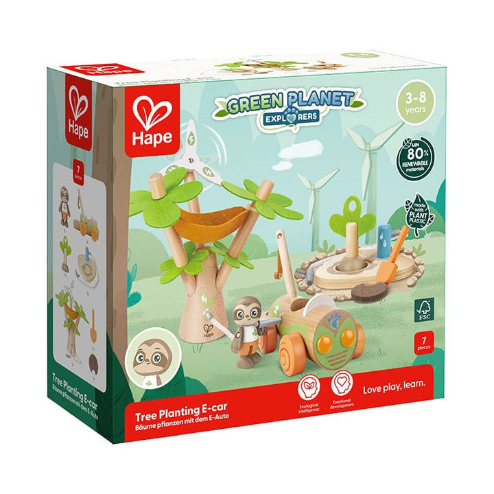 What better way to help your child learn the importance of the environment than with an adorable role-playing toy that encourages sustainability! Watch your kid’s imagination take off as they make believe with the baby sloth driver, “electric” car, wind turbine and tree-planting kit in this awesome play set. The tall t