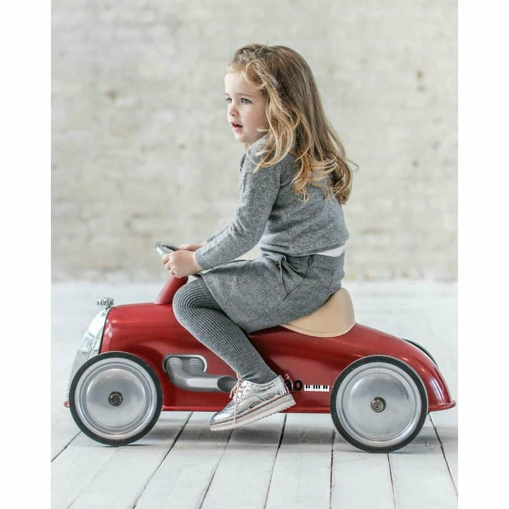 An FAO Schwarz Exclusive! A durable ride-on car with sleek, vintage design. This item comes with FAO Schwarz decals that can be placed on the car for an elevated look. The Riders, the new XL ride-on car from Baghera! With its 90cm length and large wheels, this gorgeous car is for seasoned pilots! Strong, silent and ver