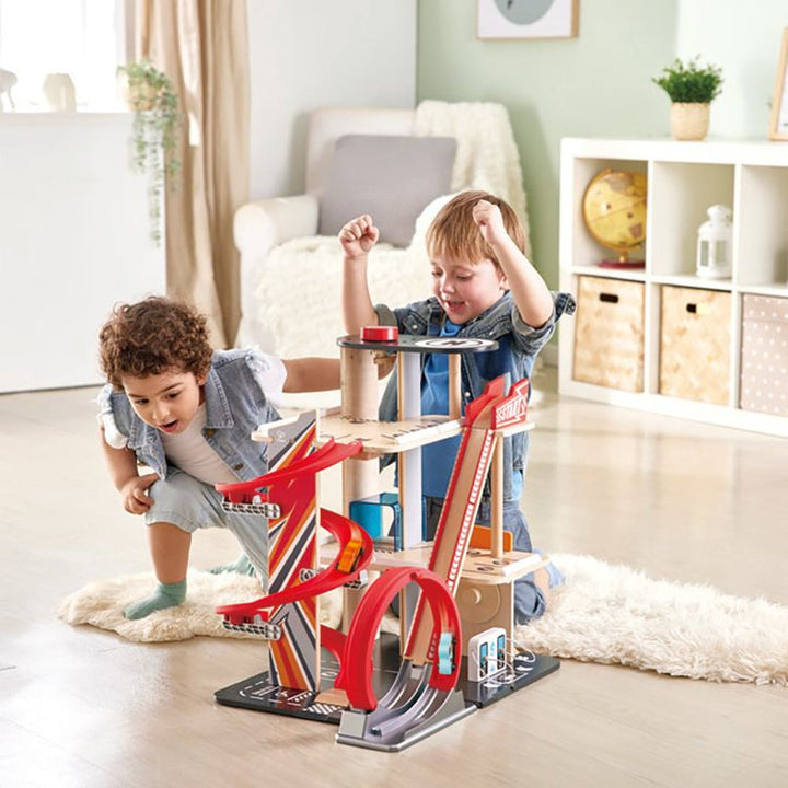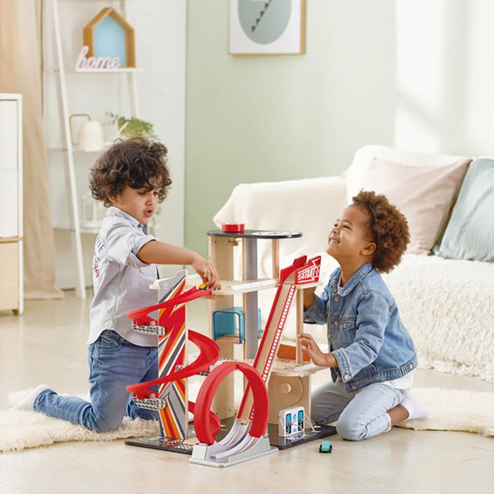 Setting up the tracks and racing the cars down the ramp allows children to make up their own intricate stories and adventures with their racing car buddies. AIDS DEVELOPMENT: This toy helps develop fine-motor skills and hand-eye coordination whilst encouraging imaginative play. VARIOUS ACCESSORIES: This garage playset
