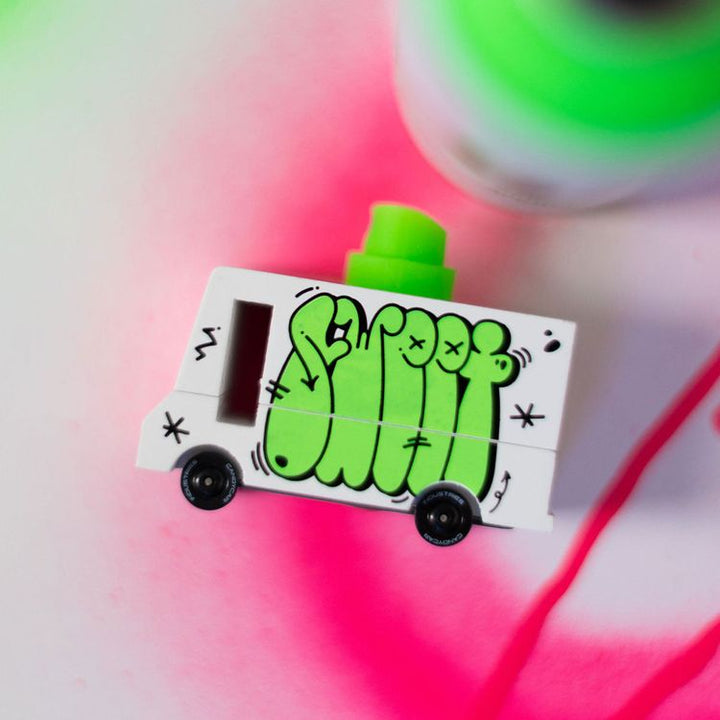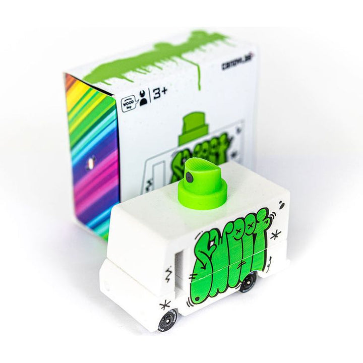 TAG, you're it. A SWEET design straight from the streets of New York, with a green silicone spray topper. Paint not included! Dimensions: 3.7 x 1.7 x 3.7 in Ages 3+ Material: 100% Beech Wood