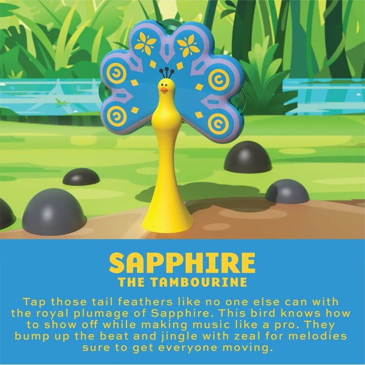 Introduce your toddler to the rhythmic world of music with the FAO Schwarz® Jungle Drum 5-Piece Instrument Set. Each instrument in this playful set is inspired by a different wild animal, making music time an exciting and educational jungle adventure. The set includes a drum (body and lid), a zebra-shaped maraca, a pea