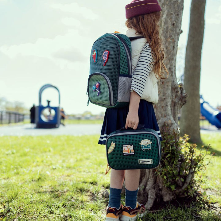 The Starter backpack is perfect for young students ages 3 to 6 yrs old. The bag fits a standard A4 folder when placed to the back of the bag. It does not fit a binder. These featherweight, ergonomic backpacks have sturdy form and structure making them comfortable and stylish! The line expands into sling bags, cosmetic