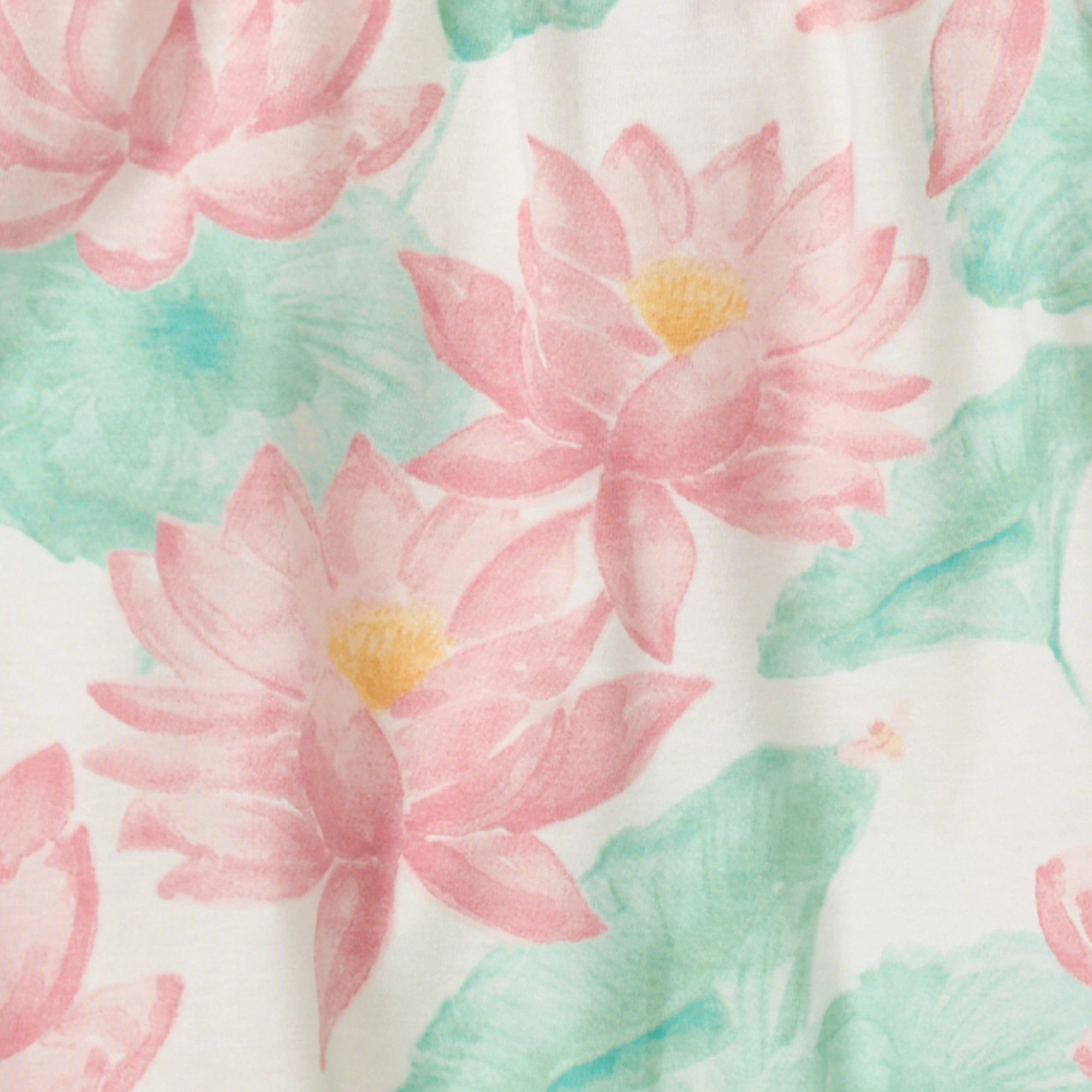 Enjoy easy. all-day wear with this soft tunic adorned with a beautiful lotus print and pretty ruffled sleeves. paired with comfy capri leggings.