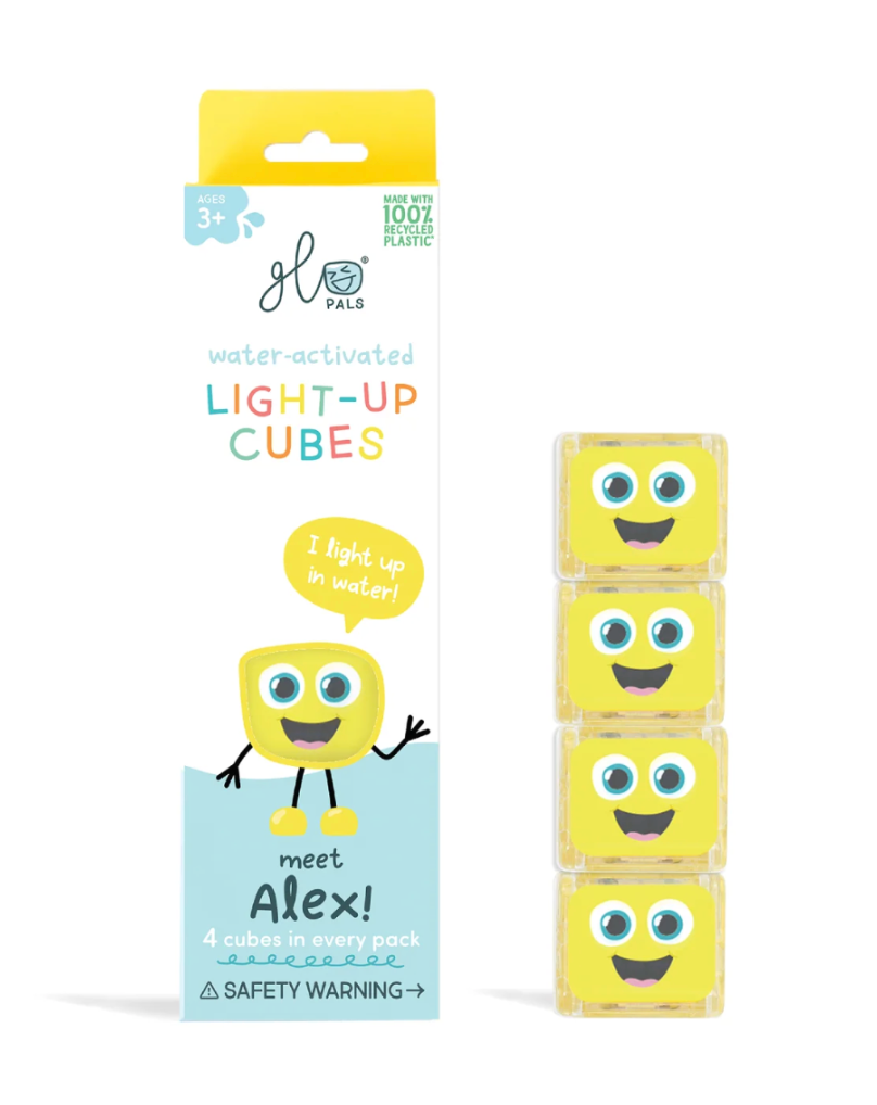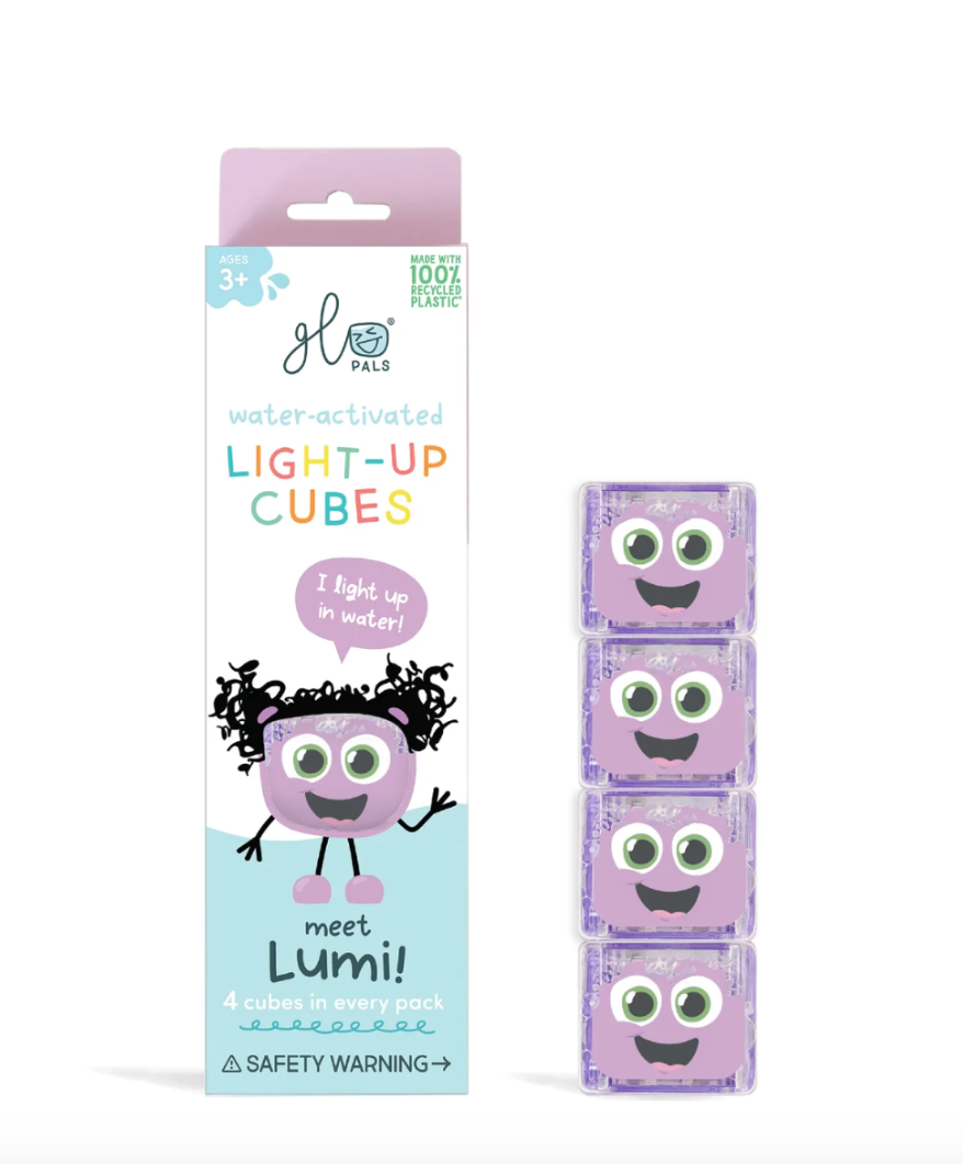 Glo Pals Light-Up Cubes are the perfect way to brighten up playtime .- Simply drop your Cubes in water and watch them light up like magic! Each pack includes 4 Light-Up Cubes.