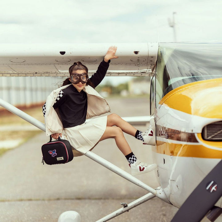 The insulated lunch tote keeps food hot or cold and is easy to carry with you to school. Insulated to keep food hot or cold Easy to carry handle Name tag Buckle to clip lunchbox onto your bag Fits most containers and bento boxes. Fits into all of our backpacks except the little miss Size: 10" W 7" H X 3.5" D + Contents