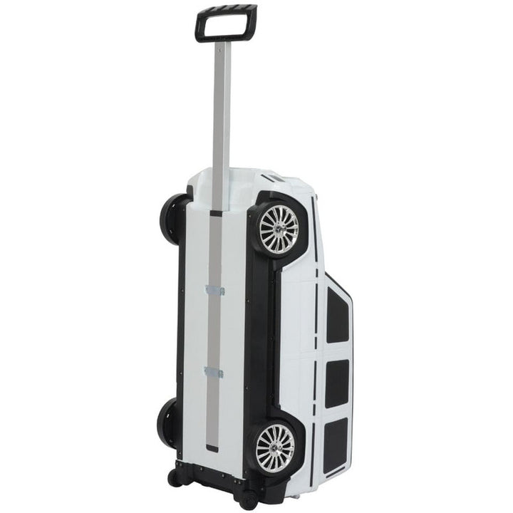 Officially licensed two-in-one Mercedes Benz G-class suitcase that can be used as both a suitcase and a ride-on push car. The large storage space is located in the car-look trunk and is reached by tapping the front car logo for storing carry-on luggage. By unlocking the top handle, it is simple to transform into a ride