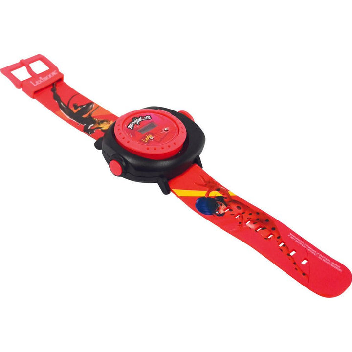 A digital watch with Miraculous design! 20 images of lady bug universe to project wherever you want Communicate with your friends by sending coded messages with your favorite screenings Adjustable strap, perfect for small wrists Rotating ring to choose the image to be projected Time and date display Dimensions: 5.31 x