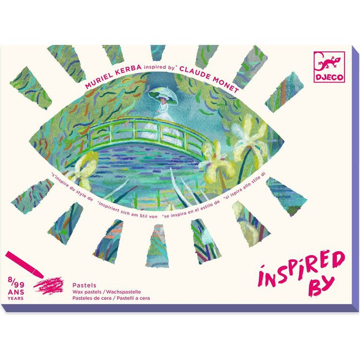Inspired by the work of Claude Monet, Muriel Kerba offers us a triptych to complete in the impressionistic style worthy of the panoramic frescoes of Monet’s Water Lilies, using touches of color with oil pastels. An introduction to the work of Claude Monet. A contemporary illustrator’s interpretation of the great master