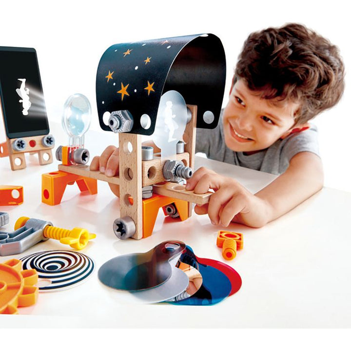 Explore the world of optical science and light with this set of eight experiments. Perfect for young scientists and inventors! EXCITING EXPERIMENTS: This optical kit consists of the following eight experiments – a Periscope, a Cone Illusion, a 3D Viewer, a Rotating Kaleidoscope, an Infinity Mirror, an Optical Lab, an O