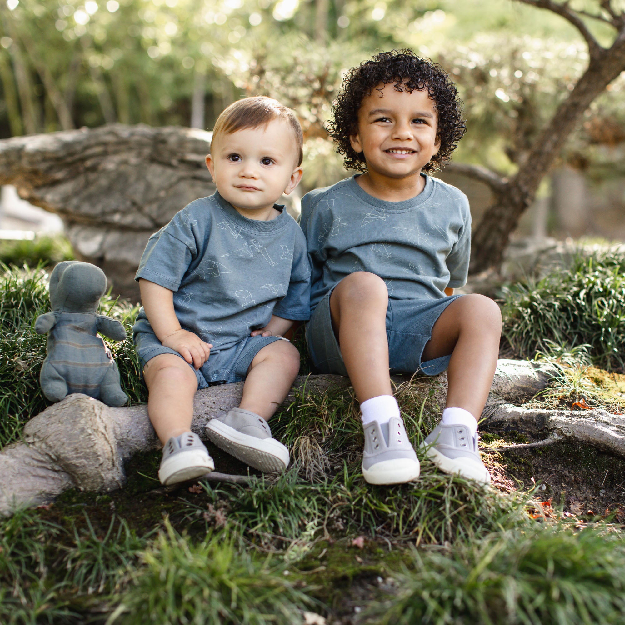 Dinosaurs. origami. and soft cotton combine in this comfy shorts and tee set — perfect for everyday adventures your little one will love.
