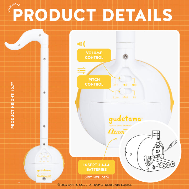 Everyone’s favorite lazy egg meets Japan’s favorite musical toy in this adorable special edition Sanrio Otamatone! BEST SELLER – One of Japan’s Best-Selling Musical Instruments / Portable Synthesizer Toys! FUN & EASY TO PLAY – Slide your fingers along the stem to vary the pitch and squeeze the cheeks for vibrato CR
