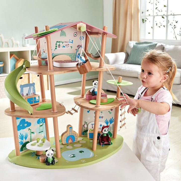 What’s even cuter than a play house? A panda play house! Let your little one explore their creative side with this adorable twist on the traditional play house from Hape. Sam, Pam and their panda family live in an eco-friendly bamboo house your child will explore for hours. The 3-level playset is complete with a full s