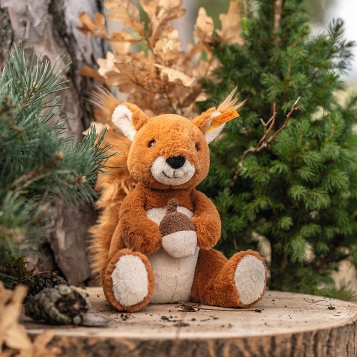 Does anyone have some nuts to spare for this cuddly little fellow? Our Phil squirrel sits expectantly on his backside stabilised with a granulate bag and wants to be stroked, cuddled and played with! Soft and snuggly, the 20 cm tall Phil is a perfect playmate for little hands. Primary Color:Â light brown Material:Â made
