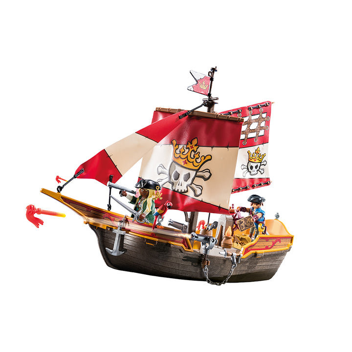 Set sail aboard the Pirate Ship! Join the pirates as they fight the sea monsters and look for Crystal Skull Island, where the monsters reside and hoard their treasures. Equipped with functioning cannons and movable sails, this boat is armed and ready to defend against enemies. Perfect for water play, this floating boat