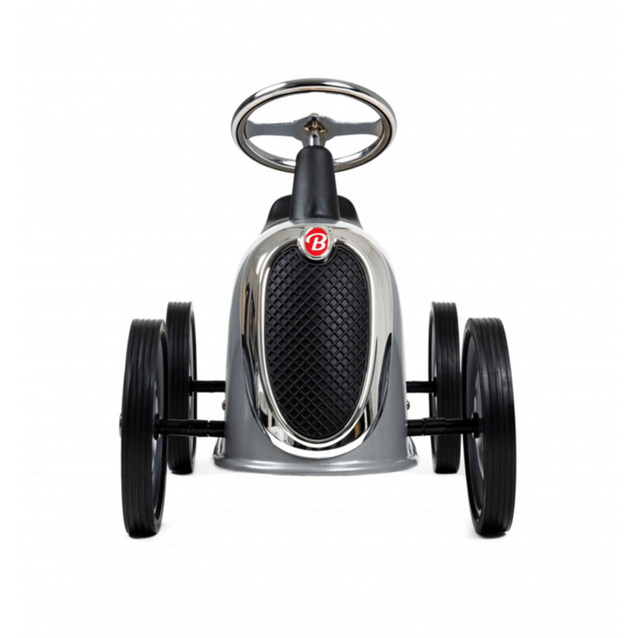 The Riders, the new XL ride-on car from Baghera! With its 90cm length and large wheels, this gorgeous car is for seasoned pilots! Strong, silent and very maneuverable, this large ride-on is all metal. A maxi ride-on for champions with big ambitions! A durable ride-on car with sleek, vintage design. Dimensions:Â 34" x 15