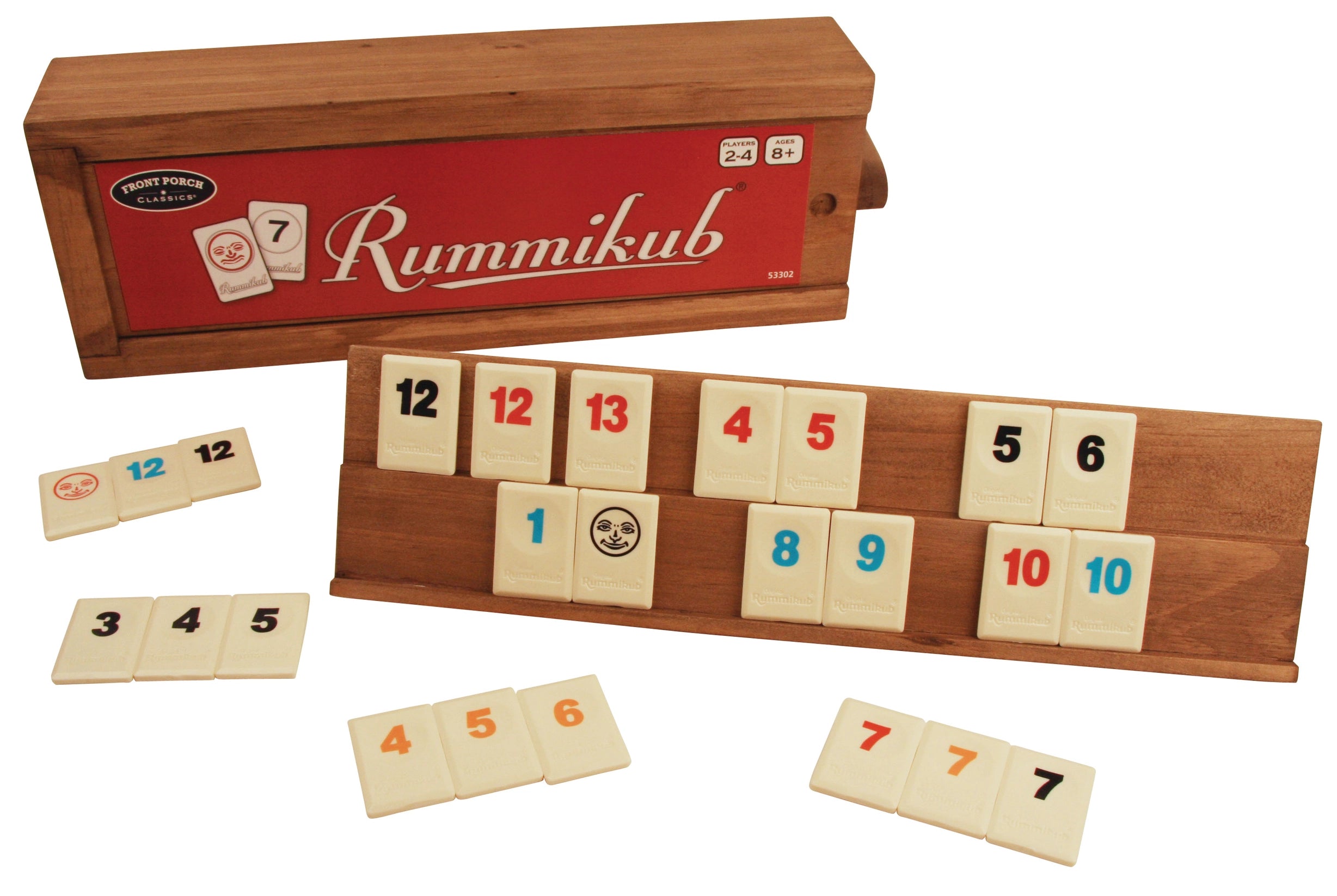 The new edition features an all wooden storage box. complete set of 106 Rummikub game tiles and nifty slide-off lids which double as wood tile racks. Great high quality components and colorful tiles make this set a real treat.