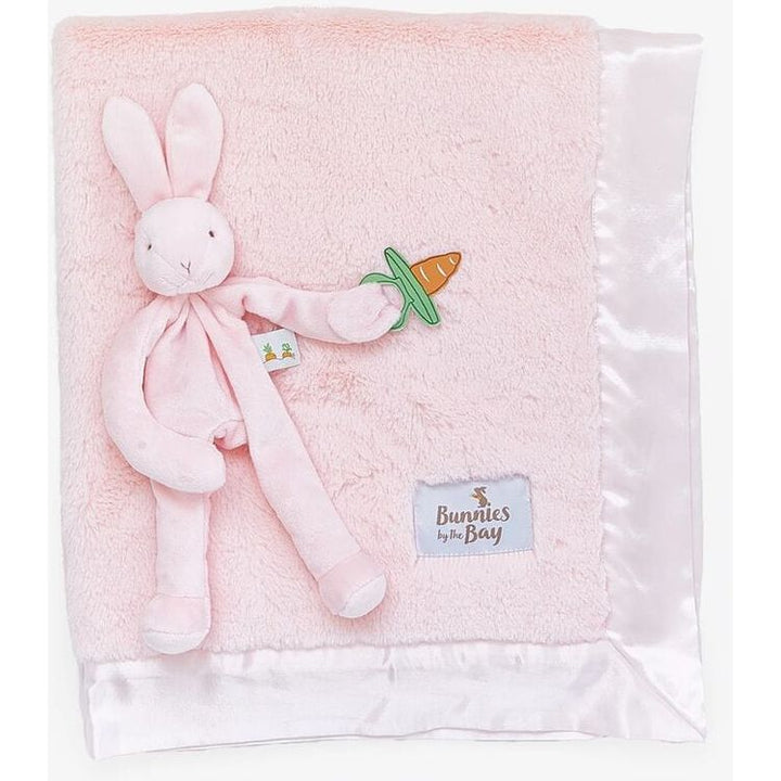 Bunny Silly Buddy Pacifier Holder – Super-soft, floppy and oh-so useful, this take-a-long pal will tie onto a baby's stroller, crib, or car seat. With a pacifier holder hand loop and fun rattling head, this is sure to be a favorite security item of Baby and Parent alike! Size: 10" Safe for all ages Embroidered Details