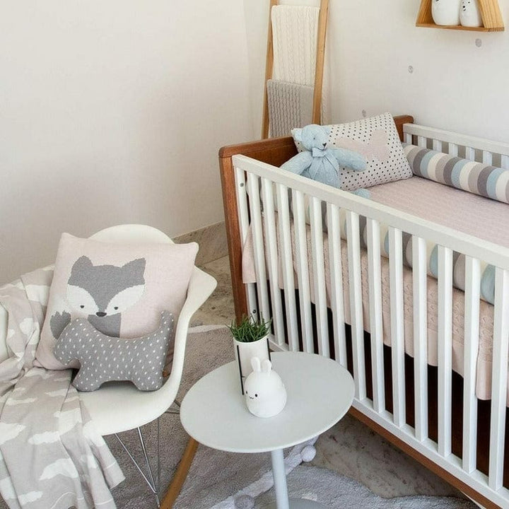 Rian Tricot’s extensive collection of cushions, pillows, and blankets are well-designed with a varying yet complimentary color pallet; each individual product coordinates with others to bring effortless luxury to every nursery. Adorable fox pillow Materials: Knitted cotton 50% and nylon 50% Product Dimension: 18" x 18
