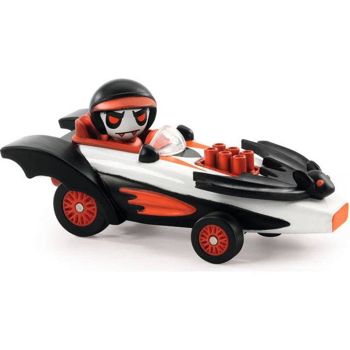 With its pale complexion and vampire teeth, Speed Bat comes out at night to identify its opponents for the upcoming wild night races! Metal car with suspension. A driver created specially for each car. Plastic parts give the car a unique look. Ultrasonic metallic paint. A world of crazy cars – each with its own driver