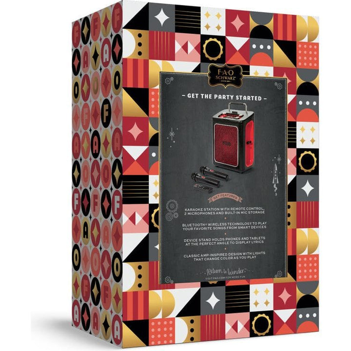 Step into the limelight with the F.A.O. Schwarz® Stage Stars Karaoke 2-Mic Music Station. This interactive music station is complete with remote control, two microphones, and built-in storage to keep everything organized. Connect your smart devices effortlessly via Bluetooth wireless technology and belt out your favori