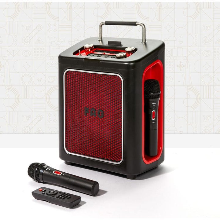 Step into the limelight with the F.A.O. Schwarz® Stage Stars Karaoke 2-Mic Music Station. This interactive music station is complete with remote control, two microphones, and built-in storage to keep everything organized. Connect your smart devices effortlessly via Bluetooth wireless technology and belt out your favori