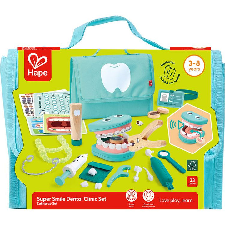 Give your child a bright smile and hours of imaginative fun with the Hape Super Smile Dental Clinic Set! This engaging pretend play dentist kit allows kids to step into the shoes of a dentist and explore the world of oral health. With a complete set of realistic dental tools and accessories, children can practice brush