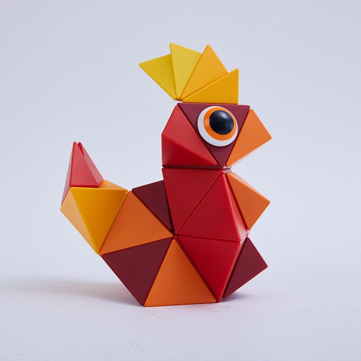 Sunrise Large set, the red, dare to shine bright like the morning sky with Sunrise. First of its kind in 3D magnetic play, the 36-Pieces Set includes: 6 octahedrons, 12 tetrahedrons, 12 half-tetrahedrons, 6 eyes (in total 36 pieces) + Leaflet + Limited Edition "Inspiration Book" With a large set you can either build on