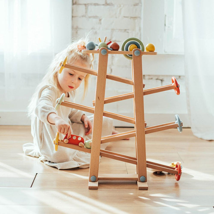 The Tumble Track is an innovative toy designed to bring endless hours of fun and excitement to children. With its colorful ramps and engaging design, it captivates the imagination and provides a unique sensory experience. Watch as widgets, cars, balls, and spindly roly-polys race down the ramps, each creating a unique