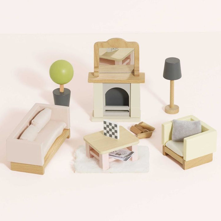 Wooden Dollhouse Living Room Furniture Set – 19 Pieces