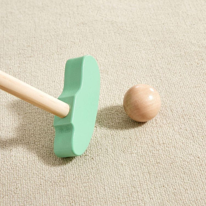 Your kiddos will love our Putt Putt Golf Set! Our 8 piece set includes shark with tongue, 3 sized mountains, flame and ramp, bridge, windmill, and hole with flag. Also includes 2 adjustable height golf clubs and 2 wooden balls. Adjust it different ways to increase or decrease difficulty level. Or pair with our Good