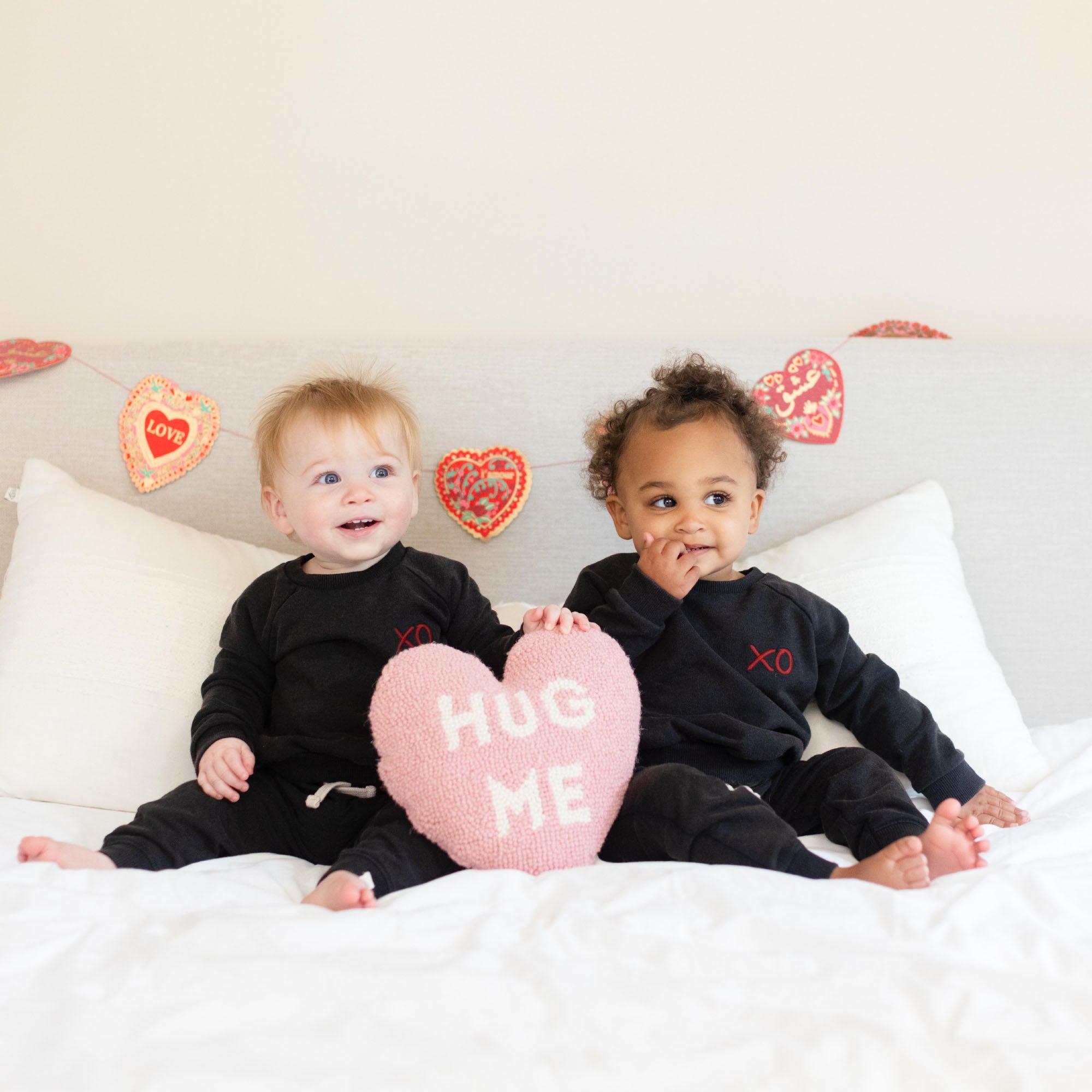 Your little sweetheart will be wrapped in hugs and kisses with this black sweatshirt set. featuring a red XO!